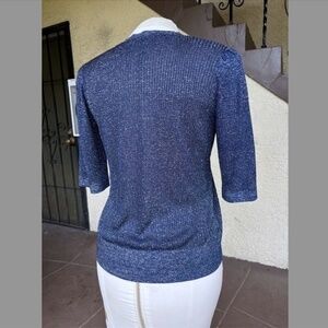 VERONICA BEARD Ume Blue Metallic Shimmer Short Sleeve Knit Top EUC/sz L