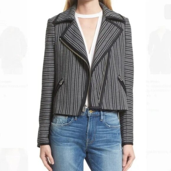 VERONICA BEARD Vertical Stripe Asymmetrical Moto in Navy And White Size 6