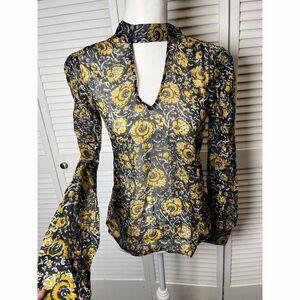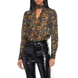 VERONICA BEARD Wade Metallic Floral Silk-Blend Keyhole Blouse Top Sz 0 $450 NWT!