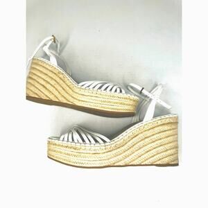 VERONICA BEARD White 101mm Ravina Coconut Leather Platform Wedge sz 12m