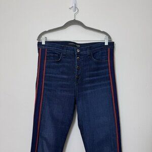 VERONICA BEARD Women’s Carolyn Baby Boot Jeans Size 32 Button Fly Red Striped