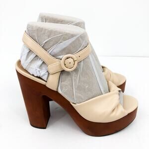 VERONICA BEARD Womens Gela Platform Sandals 10 Cream Shell Wood Leather NWOB