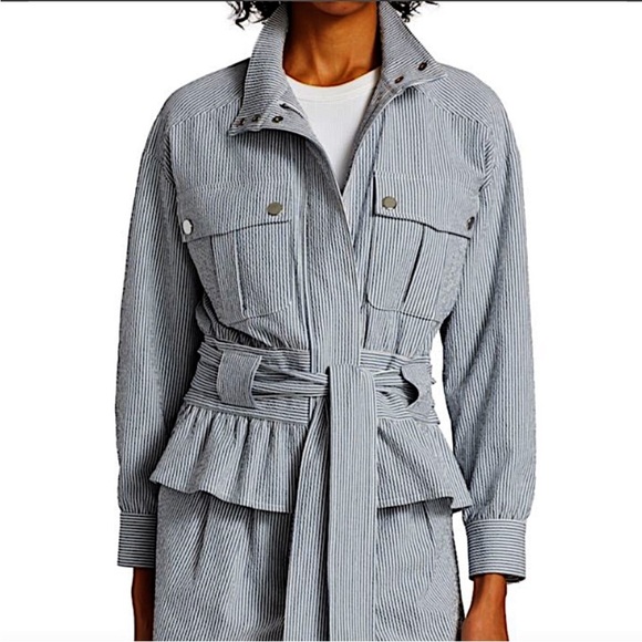 VERONICA BEARD York Striped Belted Seersucker Jacket