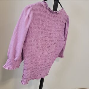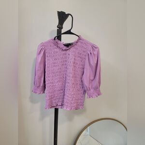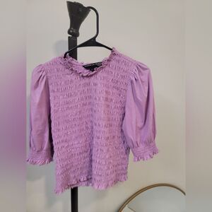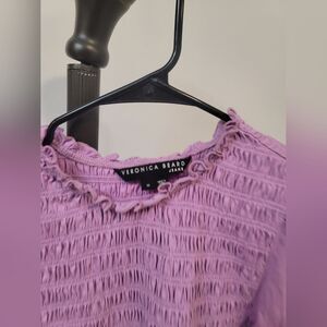 The Veronica Beard Langston Top in Violet, Size Medium is a chic statement piece that combines modern tailoring with feminine elegance. Its bold hue adds sophistication, making it versatile for both work and evening looks.