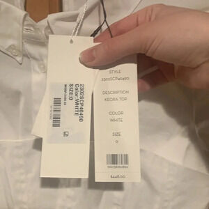 NWT Veronica Beard keora corset button down. Structured, classic look, perfect for pairing with work trousers or jeans. Stock photo added from the website for reference.