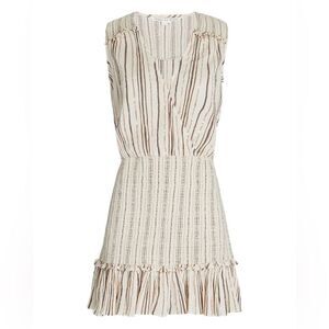 VERONICA BEARD Cox Smocked Striped Mini Dress Natural Multi Beige Sleeveless 298