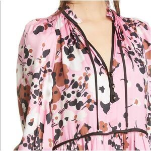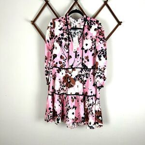 VERONICA BEARD Hawken Pink Floral Tiered Ruffle Silk Blend Dress E128