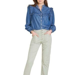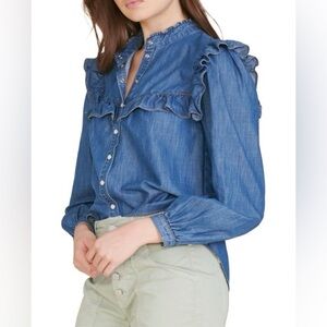 VERONICA BEARD Tes Ruffled Denim Button Down (T2)