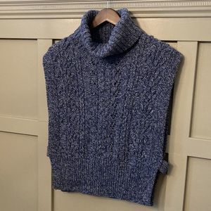 VERONICA Beard Collina Cable Knit Turtleneck Vest Sweater Blue Merino Wool Silk
