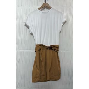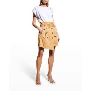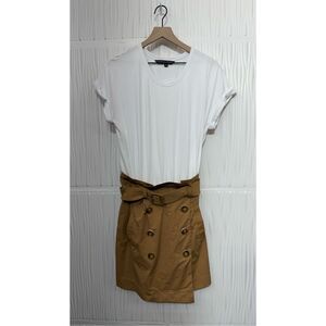 The Melany dress from Veronica Beard features a classic T-shirt bodice paired with a double-breasted skirt with an asymmetric hem.