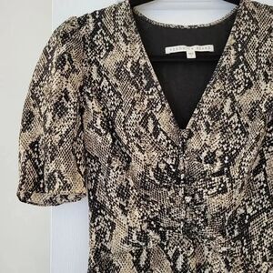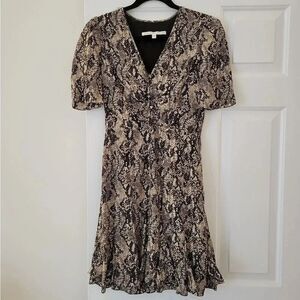 This effortless yet luxe little flounce dress in a rich, earthy python-print by designer Veronica Beard will be a statement addition to your wardrobe.