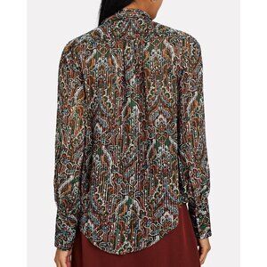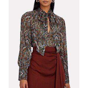 💕VERONICAL BEARD💕 Zaylee Tie-Bow Metallic Silk-Blend Blouse ~ Paisley Print 6