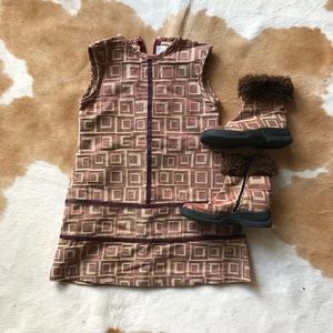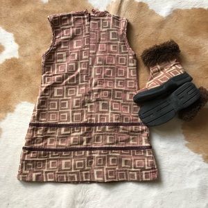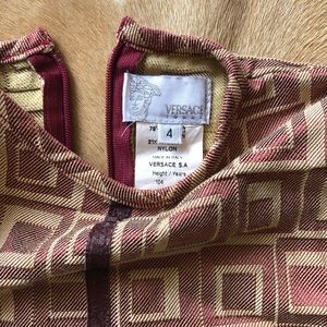 Rare VERSACE girls designer scooter dress in a berry & cream geometric textured print. Zipper back. tag says size 4, may fit size 3 best.