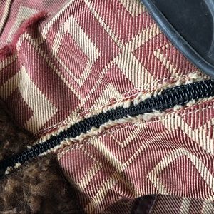 Outfit in good condition with natural wear with wearing down of the leather or faux leather. The boots also are in fair condition and have wear near the zipper and backs.