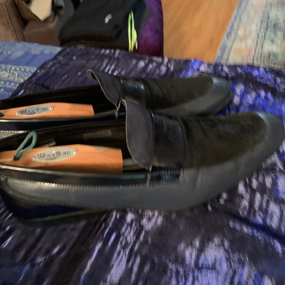 Sued and Leather, Blue and Black, gently worn, great shape!
