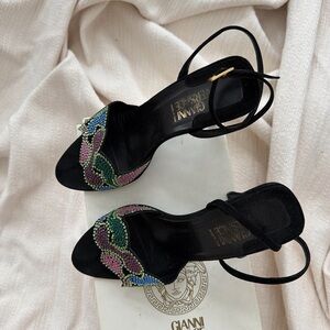 GIANNI VERSACE vintage runway Swarovski crystal on black suede sandals