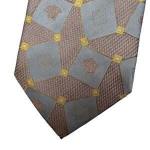 VERSACE 90s Vintage Metallic Silk Medusa Pattern Tie Made in Italy