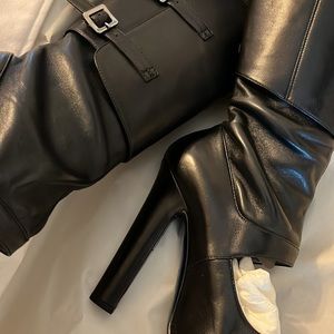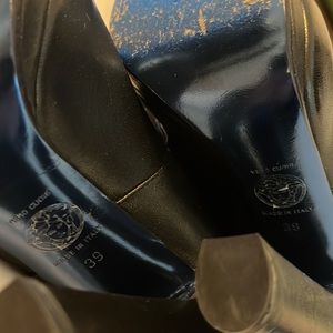 VERSACE Black Leather High Heeled Knee High Boots 39/9 w/buckle details, dustbag