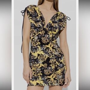 VERSACE Black and Gold Mini Dress