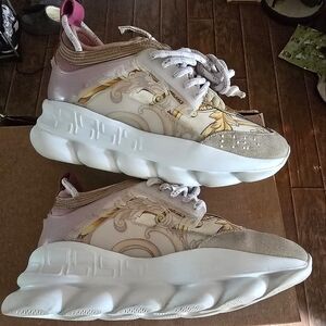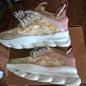 RARE VERSACE CHAIN REACTION Platform Sneakers. Multi Color. Made in Italy. Pre-owned In Good Condition. Please See Detailed Pictures.