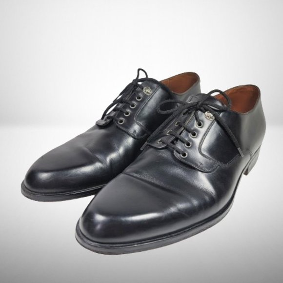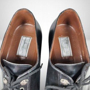 Classic Versace Black Smooth Leather Oxford Lace Up Dress Shoes.