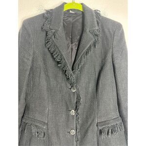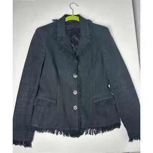 VERSACE CLASSIC Black Fringe Trim Cotton Blazer Size 44 IT/8 US See Description