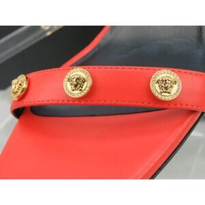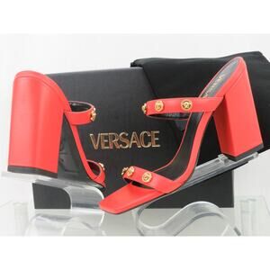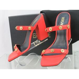 VERSACE CORAL ORANGE LEATHER GOLD MEDUSA LOGO STUDS SANDALS MULE PUMPS 36.5 6.5