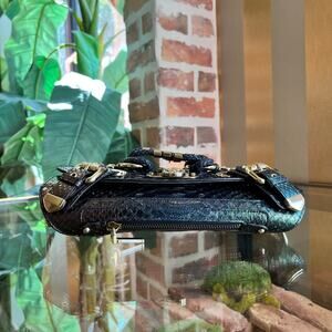 A bold and luxurious statement, this clutch is crafted from multicolor ombre python, showcasing Versace's love for vibrant patterns and exotic textures. Its sleek design and striking details make it a perfect blend of high-fashion allure and practicality, ideal for those who love to make a daring yet sophisticated impression. B+ Very Good Condition