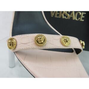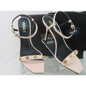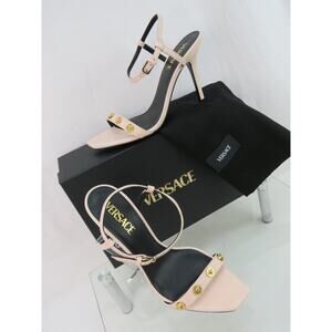 VERSACE DUSTY PINK LEATHER GOLD MEDUSA HEADS LOGO SANDALS HEEL PUMPS 40 10 SPAIN