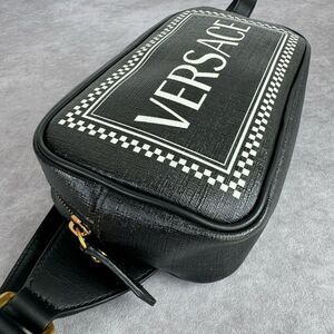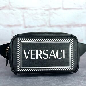 VERSACE Grained Calfskin 90's Logo Belt Bag Black