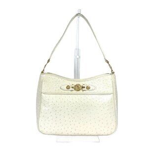 VERSACE Hand Bag Sunburst Vintage Shoulder Bag Embossed Leather WhiteBased/Gold