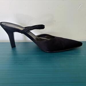 VERSACE Italy Satin Mules Kitten Heel Rhinestone Strap 39