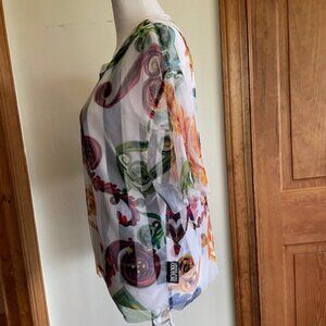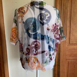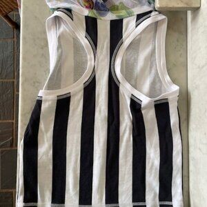 VERSACE JEANS COUTURE Black/White Racerback Tulle Baroque Jewels Overlay Top S