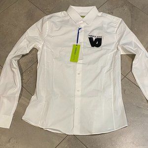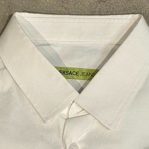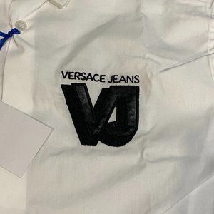UP FOR SALE IS A NWT VERSACE JEANS COUTURE MENS'S LOGO-EMBROIDERED WHITE BUTTON DOWN SHIRT! A GREAT SHIRT FOR ANY NIGHT OUT!!! THIS SHIRT IS NEW WITH TAGS. FEATURES LARGE VJ EMBROIDERED LOGO ON CHEST. ITALIAN SIZE 48 WHICH IS APPROX US SMALL. FEEL FREE TO MESSAGE WITH ANY QUESTIONS!!!