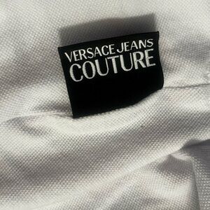 VERSACE JEANS COUTURE Sz Small STITCHED LOGO WHITE POLO SHIRT