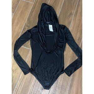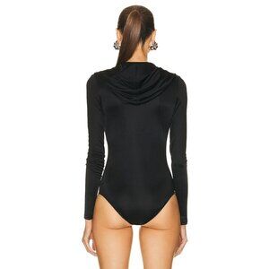 VERSACE Jersey Hooded Bodysuit in Black 36 4 New Womens Long Sleeve Top