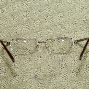 Refill your prescription in these timeless half rim glasses. They have flex back earpieces hinges that allow the earpieces to bend backwards slightly without damaging the earpieces.