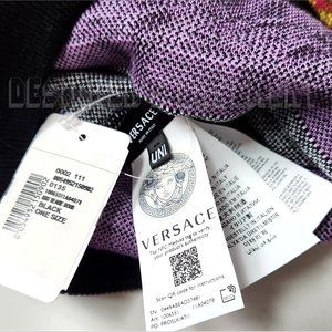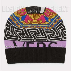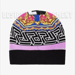 Brand New Authentic VERSACE Medusa Renaissance Greca Pattern Logo Intarsia wool blend Beanie hat