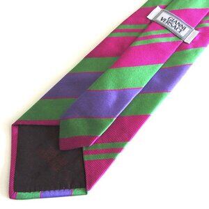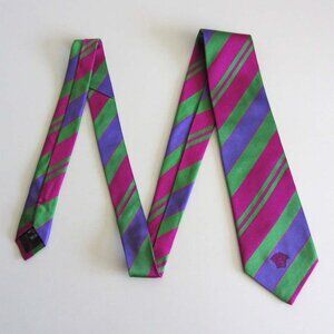 VERSACE Medusa green violet pink-red striped tie Italy 100% silk
