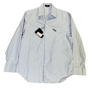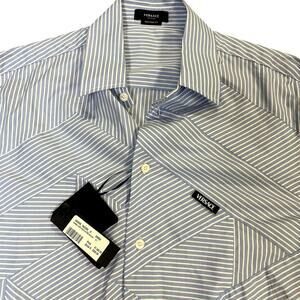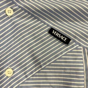 VERSACE Men's Light Blue Long Sleeve Informal Striped Cotton Poplin Button Down Shirt - 48