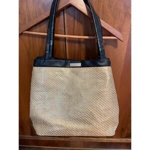 VERSACE Parfums Gold Metallic Bag Shoulder Purse Overnight Travel Black Tote