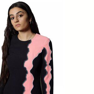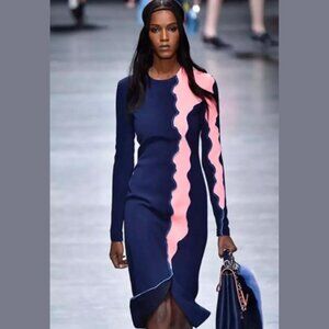 VERSACE Runway F/W 2016 Navy Blue Pink Panelled Wave Dress NWT IT Sz 42