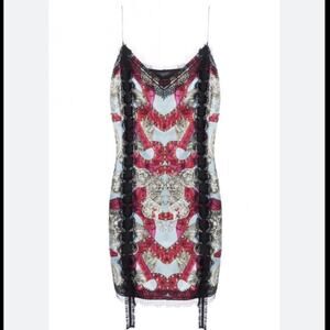 VERSACE SILK LACE TRIMMED PRINTED MINI SLIP DRESS EU 36 XS