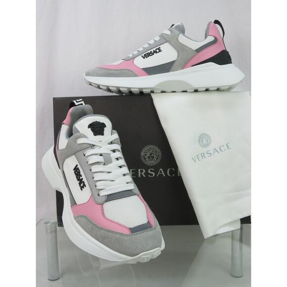 VERSACE SPLENDOR PINK WHITE LEATHER MEDUSA HEAD LOW TOP PLATFORM SNEAKERS 39 9