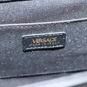 VERSACE Shoulder Bag Leather Black Gold Auth 118685AM