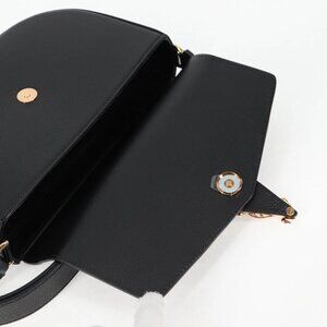 VERSACE Shoulder Bag Leather Black Gold Auth 118818A