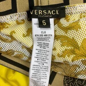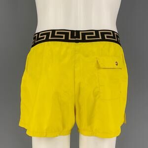 VERSACE Size M Yellow Black Gold Nylon Elastic Waistband Swim Trunks