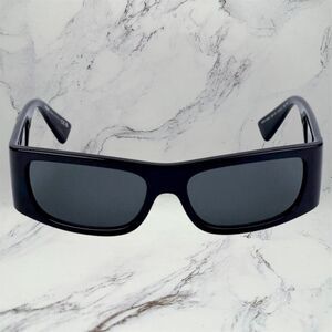 VERSACE Sunglasses New Black Square Wrap Shield Mask Acetate Gold Letter Logo