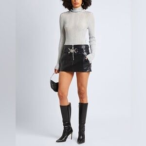 VERSACE Women's Black Leather Removable Belt Mini Skirt w/ Logo | NEW/NWT!!🖤🖤