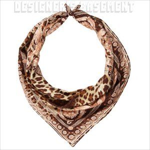 Authentic VERSACE beige Wild Barocco CROWNS brown LEO Spots print 35"-square Silk Scarf + 🎁Versace gift envelope🎁